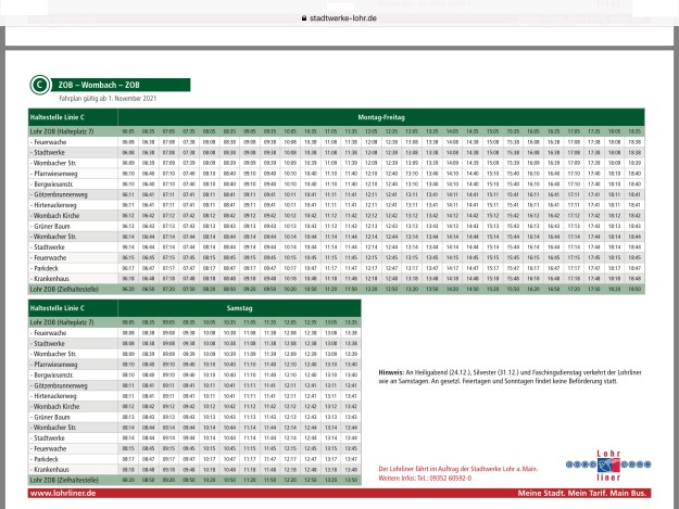 zum Vergrößern der Fahrpläne jeweiliges Bild anklicken gesamter Fahrplan als pdf Quelle: Stadtwerke Lohr